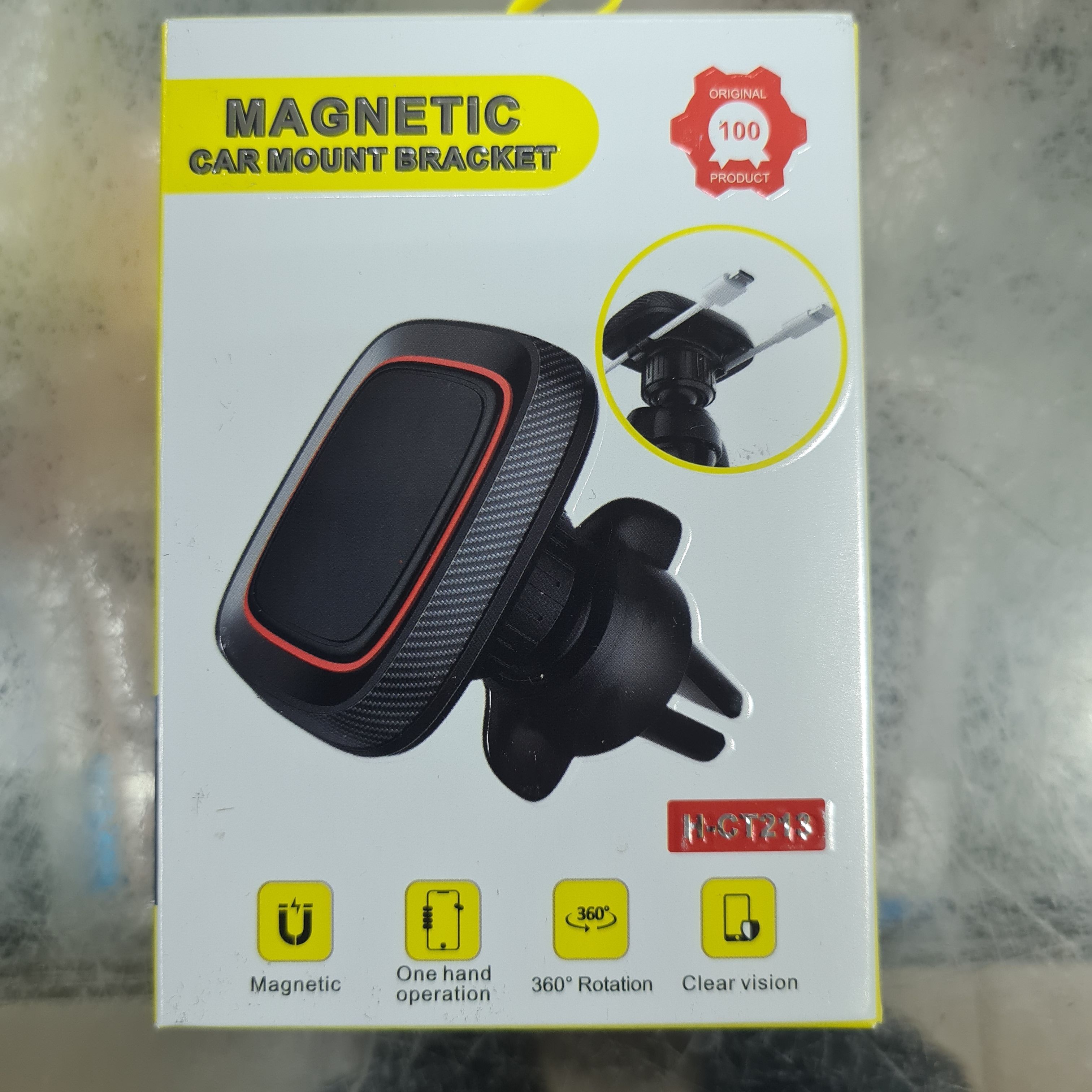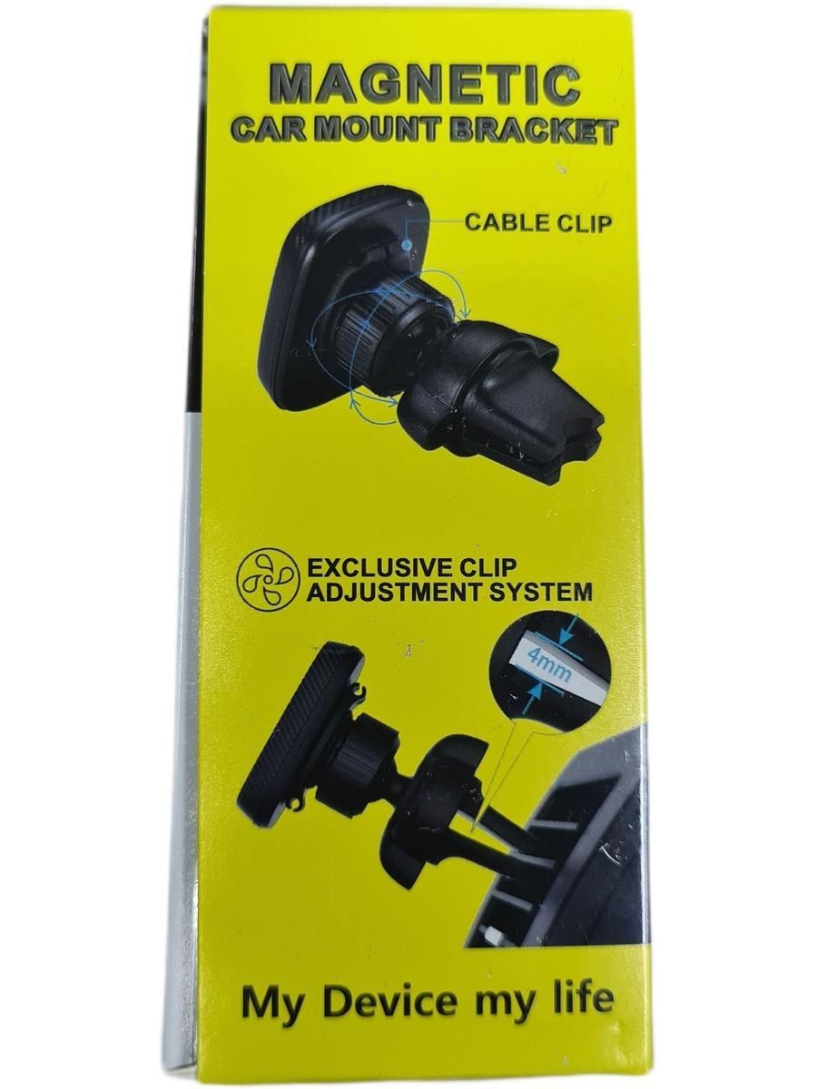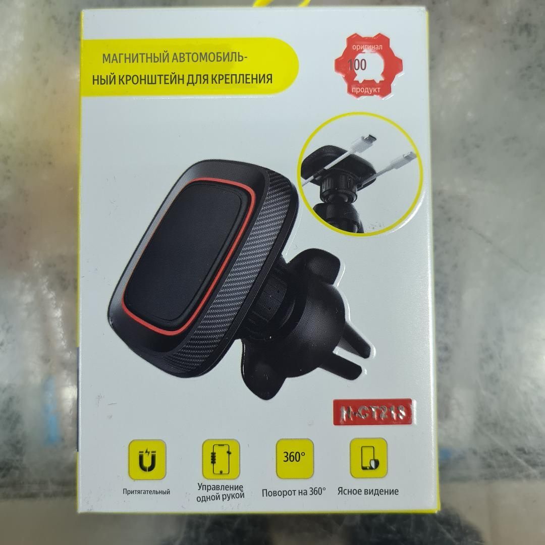 Держатель телефона автомобильный, универсальный с черным ободком. В комплекте магниты для телефона. Вид крепления защёлка, зажим